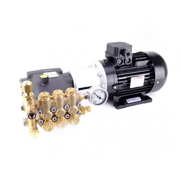 Ensemble monobloc, composé d’un moteur électrique asynchrone , d’une cloche d’accouplement, d’un accouplement élastique et d’une pompe radiale, équipé d’un régulateur de pression avec bypass intégré et un manomètre de pression 160 bars.